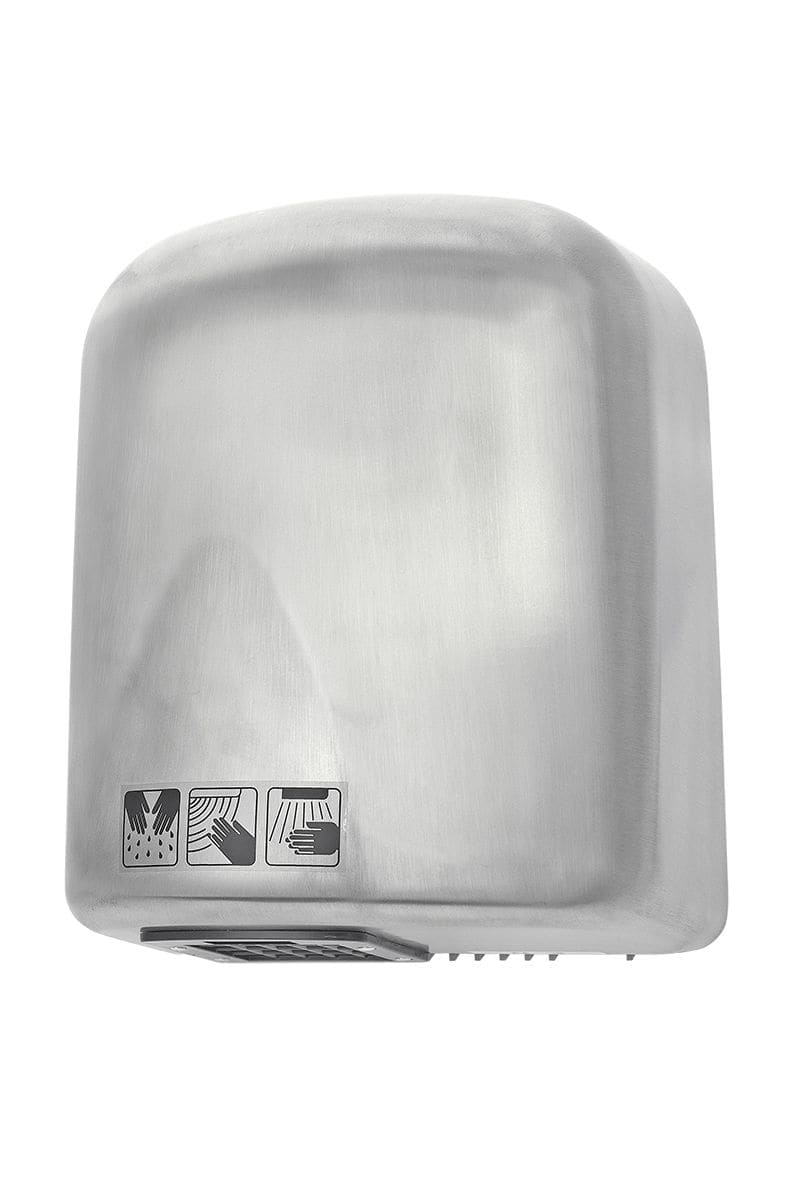 Automatyczna suszarka do rąk w kolorze srebrnym - matowym. Wytrzymałą obudowa wykonana ze stali nierdzewnej satynowej. Suszarka włącza się automatycznie poprzez zbliżenie rąk do czujnika.